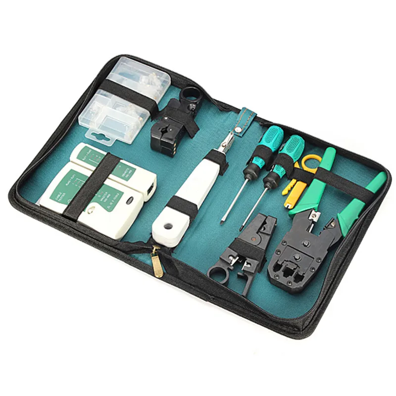 Buy 11pcs/set RJ45 RJ11 RJ12 CAT5e Cat6 Portable LAN Network Repair Tool Kit Utp Cable Tester AND Plier Crimp Crimper Plug Clamp PC and You will Save USD 0 or 0% %, Because You Just Pay for 25.39 not Full Price for 25.39